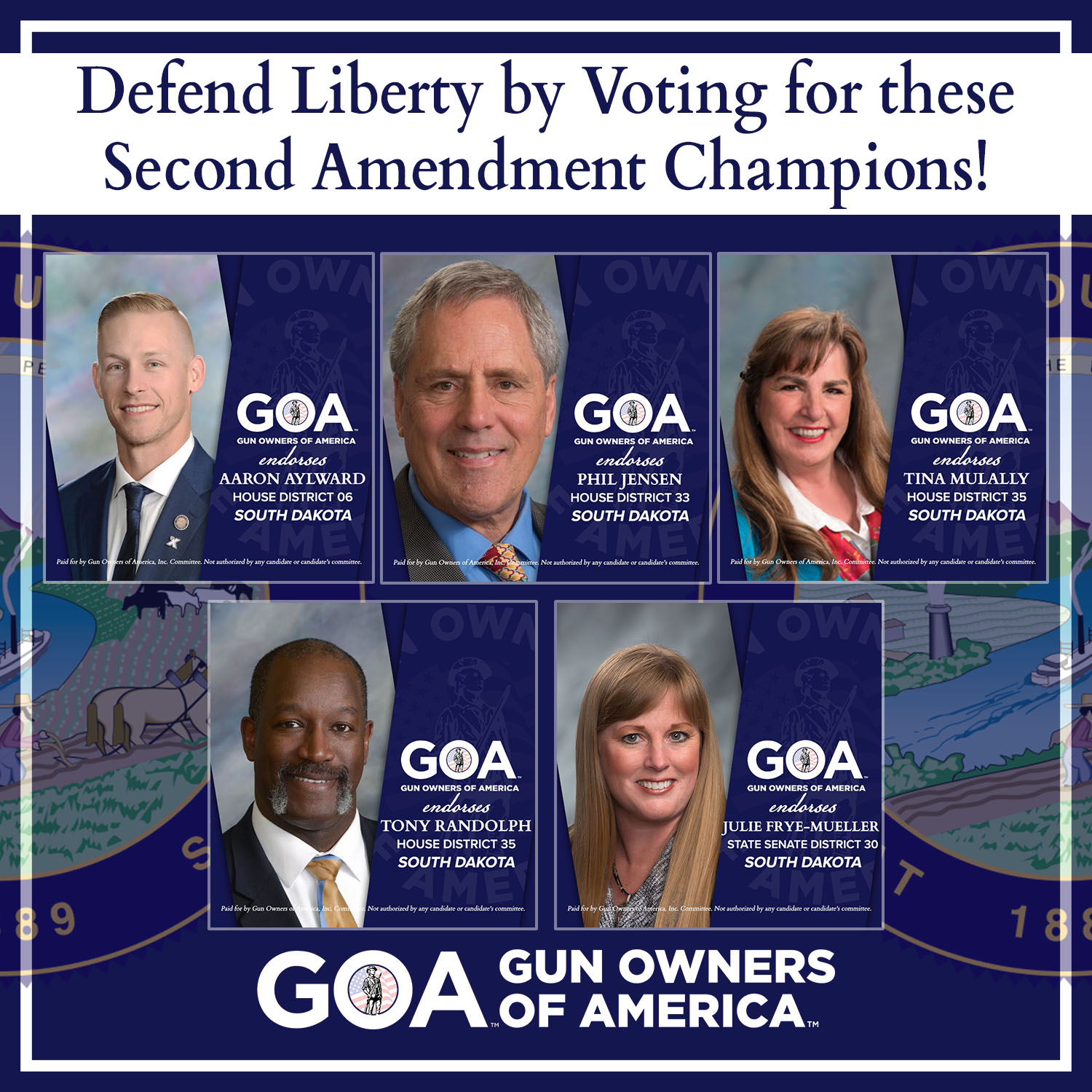 GOA is pleased to endorse these stalwart defenders of your God-given rights for the South Dakota State Senate & House!